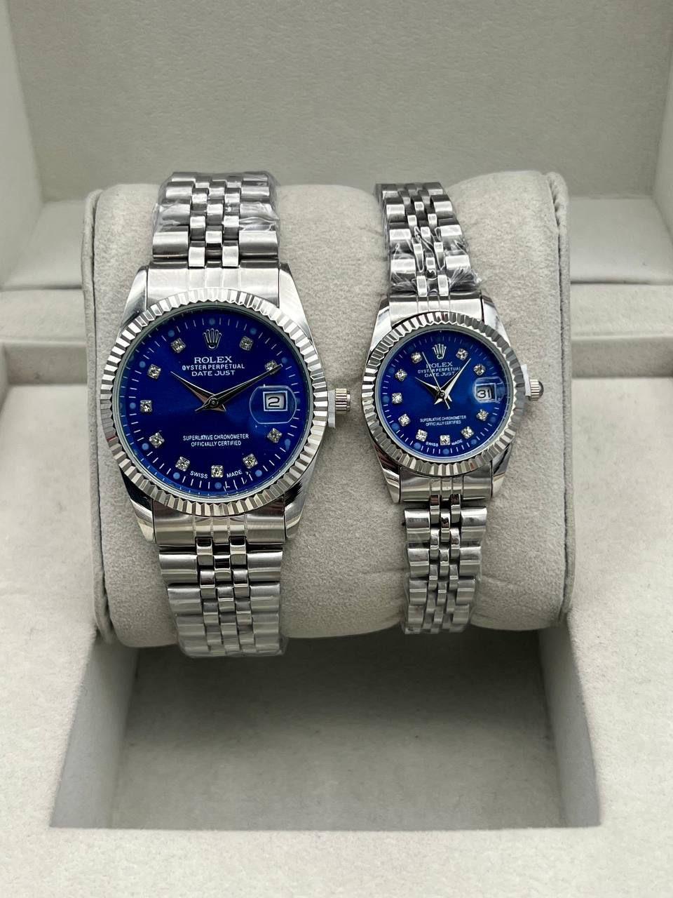 ست ساعت رولکس بند استیل نقره ای صفحه آبی - کد 137ط