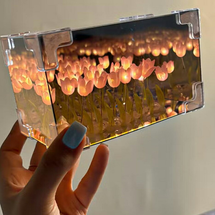 مشخصات: آینه بینهایت مستطیلی دشت لاله با طراحی نورپردازی LED، جلوه نوری بینهایت و تغذیه با باتری. مناسب برای دکور مدرن، رومیزی یا دیواری. انتخابی خاص برای زیبایی فضا.