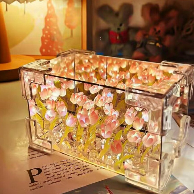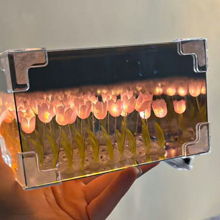 آینه بینهایت مستطیلی دشت لاله با طراحی نورپردازی LED، جلوه نوری بینهایت و تغذیه با باتری. مناسب برای دکور مدرن، رومیزی یا دیواری. انتخابی خاص برای زیبایی فضا.