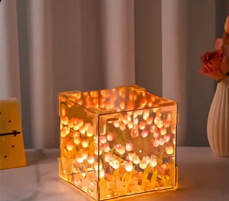 مشخصات : این آینه مکعبی با انعکاس بیپایان گلهای لاله و نورپردازی LED، جلوهای رویایی به فضای شما میبخشد. محصول به صورت قطعات جداگانه عرضه شده و قابل مونتاژ توسط مشتری است. مناسب برای دکوراسیون منزل یا هدیهای خاص! دو مدل مونتاژ شده و مونتاژ نشده داره✅