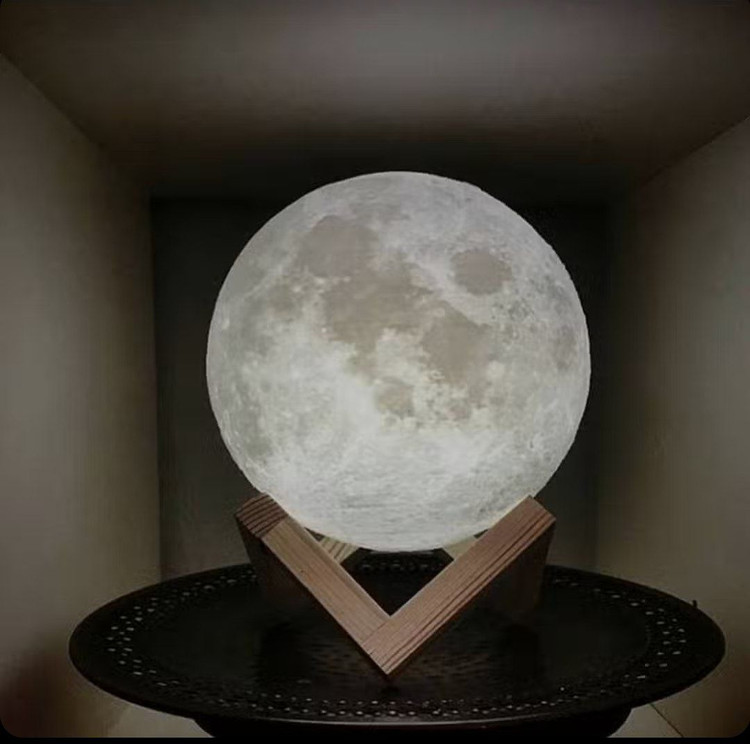 مشخصات: طراحی سهبعدی واقعی از کره ماه شارژی با کابل USB پایه چوبی زیبا و مقاوم تغییر رنگ با لمس یا ضربه قابلیت تنظیم شدت نور مصرف انرژی کم و سازگار با محیط زیست