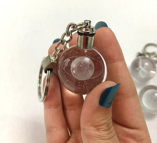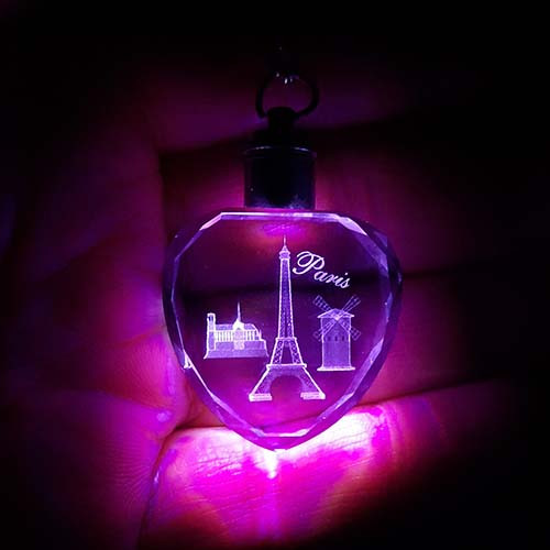 مشخصات: قطر مدل گوی 3 سانت ارتفاع و عرض مدل قلبی 3/5 * 3/5 سانت قطر حلقه جاسوئیچی 3 سانت رنگ نقره ی دارای چراغ با 7 طیف نوری دارای 3 عدد باطری