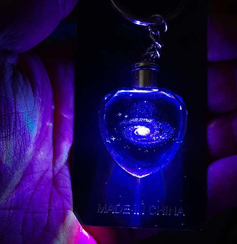 قطر مدل گوی 3 سانت ارتفاع و عرض مدل قلبی 3/5 * 3/5 سانت قطر حلقه جاسوئیچی 3 سانت رنگ نقره ی دارای چراغ با 7 طیف نوری دارای 3 عدد باطری