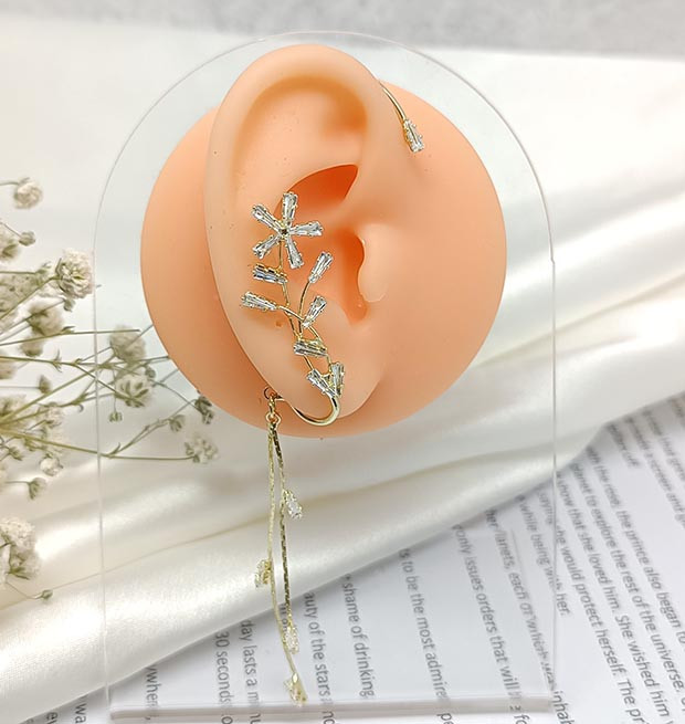 رنگ طلایی رنگ ثابت بدون حساسیت نگیندار ایرکاف قابل نصب روی گوش بدون نیاز سوراخ گوش