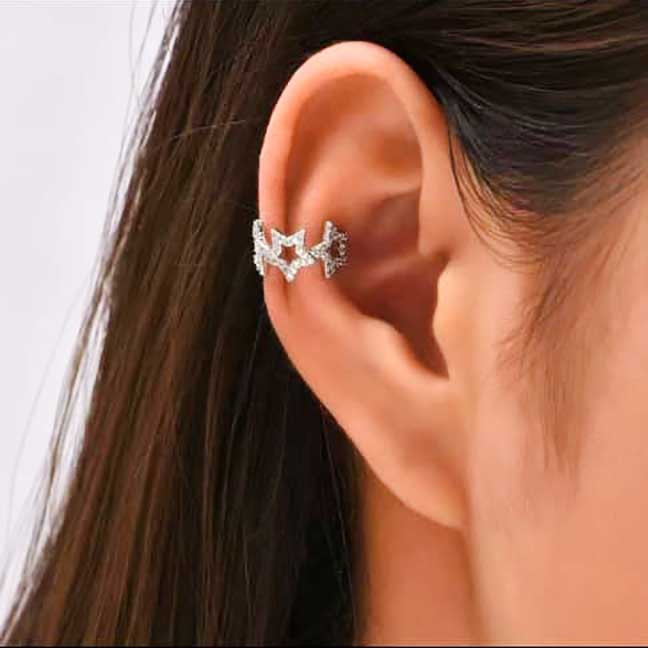 رنگ نقره ای رنگ ثابت بدون حساسیت نگیندار ایرکاف قابل نصب روی گوش بدون نیاز سوراخ گوش ایرکاف مناسب گوش راست