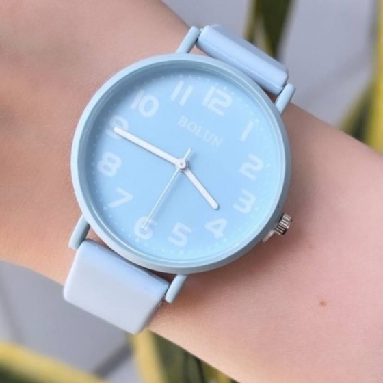 ساعت مچی زنانه و دخترانه بلون BOLUN صفحه گرد عددی بند سیلیکونی پاستیلی رنگبندی کامل