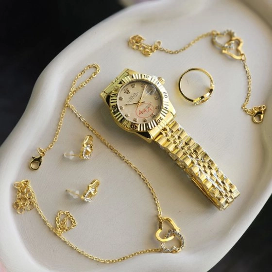 ساعت مچی زنانه مجلسی بند استیل رولکس ROLEX طلایی+باطری اضافی کد9577