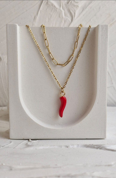 گردنبد فلفلی ✅️زنجیر استیل و رنگ ثابت ✅️آویز فلفل آبکاری خوب