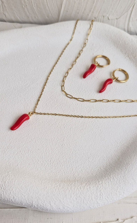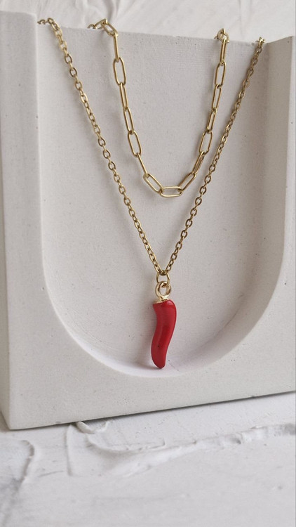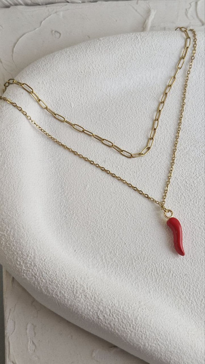 مشخصات: گردنبد فلفلی ✅️زنجیر استیل و رنگ ثابت ✅️آویز فلفل آبکاری خوب