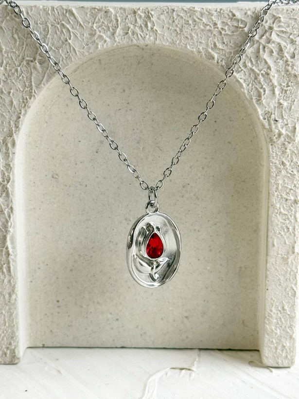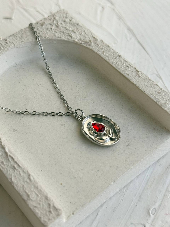 گردنبند طرح رز قرمز🌹🥲 زنجیر استیل و رنگ ثابت✅ آویز آبکاری شده و مراقبتی✅