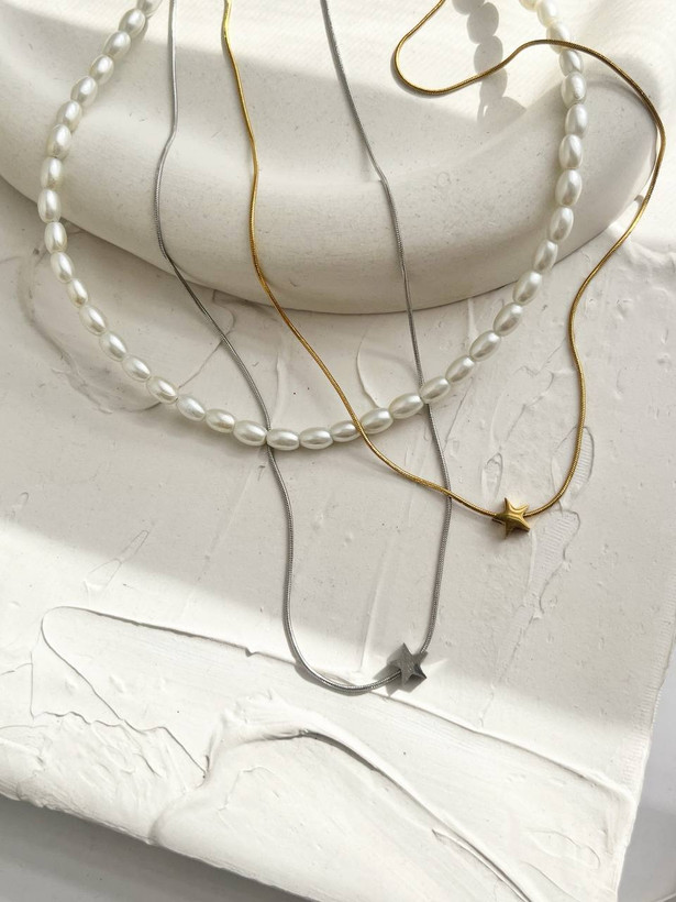 مشخصات : ستاره سه بعدی با زنجیر ماری ظریف⭐️🫠🩷 سیلور✅ طلایی✅ فول استیل و رنگ ثابت✅