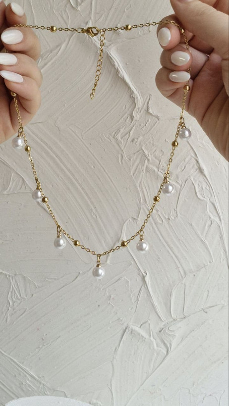 گردنبند استیل دخترانه زنانه مدل گوی و مروارید