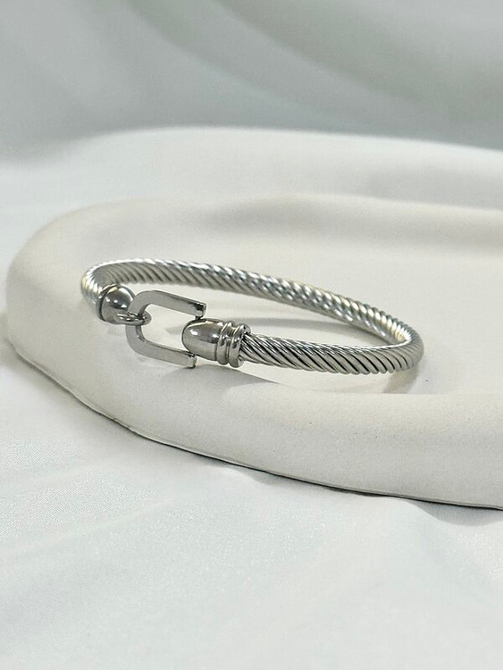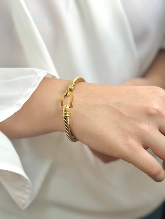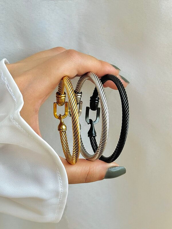 بنگل دستبند استیل زنانه و مردانه طرح امگا فری سایز در رنگبندی طلایی نقره ای مشکی