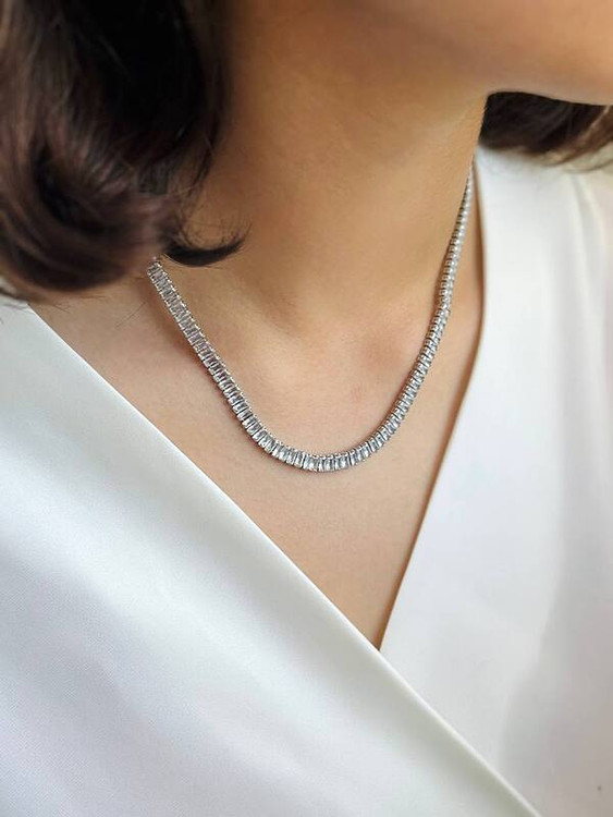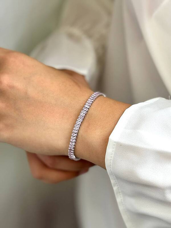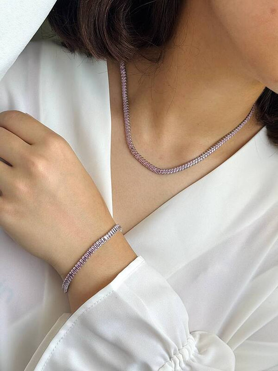 ست فول نگین زنانه گردنبندودستبند مدل تنیسی رنگ نقره ای و صورتی