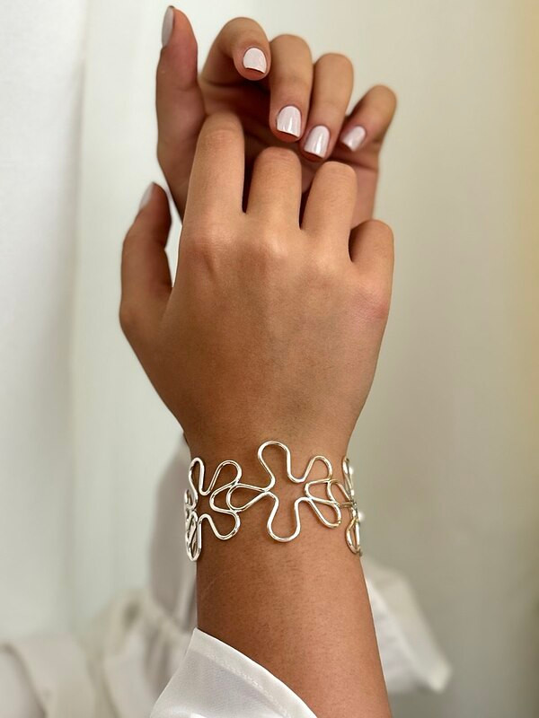 بنگل زنانه فشن طرح گل فری سایز رنگ طلایی و نقره ای