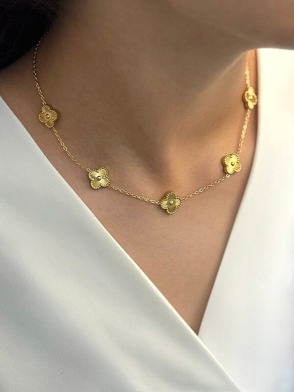 گردنبندزنانه دخترانه ونکلیف رنگبندی مشکی صدفی طلایی