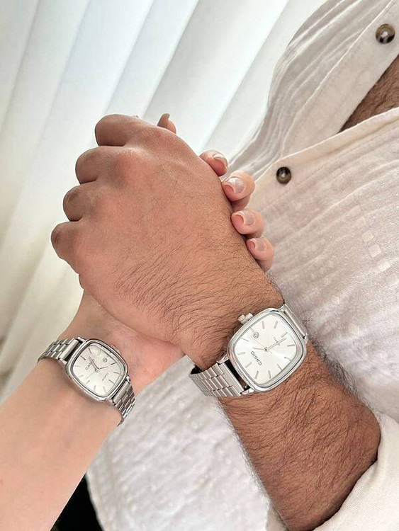 بند نقره ای قفل ریلی قابل تنظیم ابعاد شیشه مردانه ۳۳ در ۳۰ میل ابعاد شیشه زنانه ۲۶ در ۲۴ میل