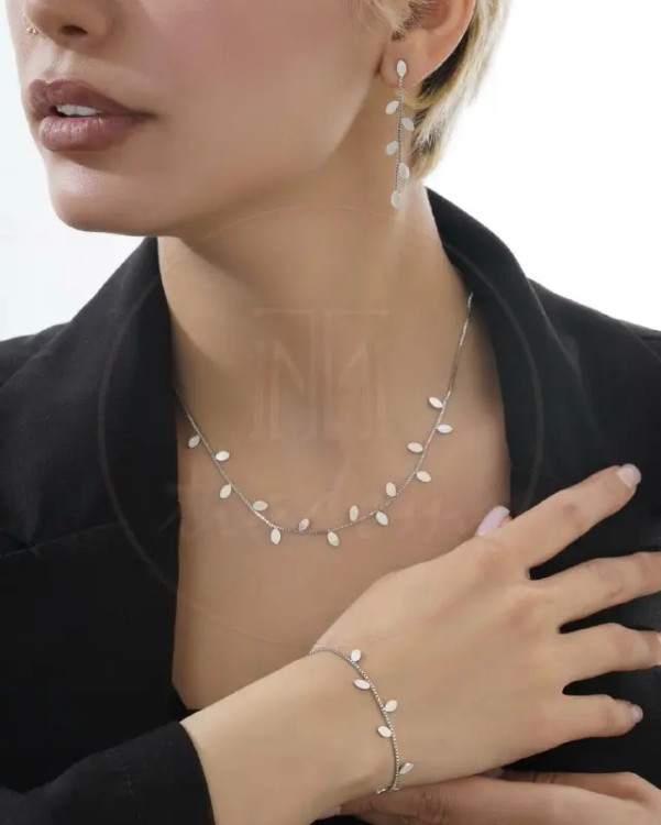 این سرویس بهطور معمول از برگها الهام میگیرند، با خطوط نرم و منحنی که حس لطافت و هماهنگی با طبیعت را القا میکنند. طراحی برگ میتواند از برگهای درختان مختلف مانند درختان بلوط، افرا، یا حتی برگهای گلها باشد. این سرویس شامل گردنبند-دستبند -گوشواره