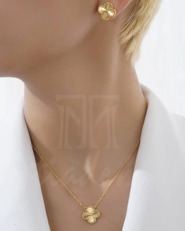ست مستر کوالیتی تک گل تراش ونکلیف به قدری خاص و زیباست که هر فردی که آن را مشاهده کند، مجذوب طراحی بینظیر آن میشود. در این مجموعه، گلها به شکلی طبیعی و هنرمندانه با استفاده از تراشهای دقیق ایجاد شدهاند که ترکیب جذابی از خطوط منحنی و تیز به وجود آورده است. این طراحیها از لحاظ احساسی، یادآور گلهای نرگس، رز یا حتی گلهای وحشی به نظر میرسند که در دنیای واقعی، زیبایی و لطافت طبیعت را با دقت در زیورآلات تلفیق کردهاند.