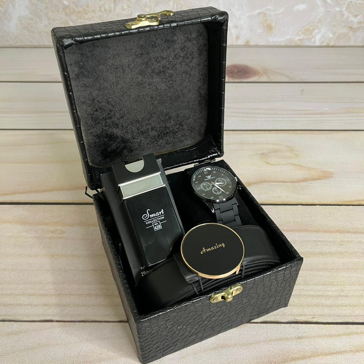 محتویات: .ساعت بندپاکنی .کمربند .ادکلن ۲۵ میل .باکس صندوقی