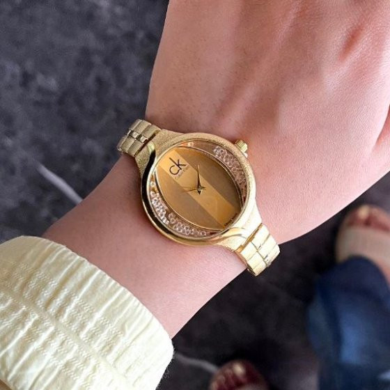 ساعت مچی زنانه سی کا ck صفحه نگین دار طلایی کد 9675