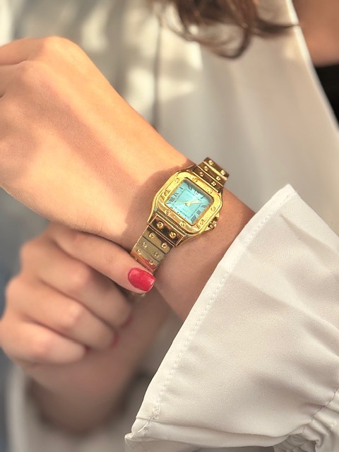ساعت زنانه کارتیه بندطلایی صفحه فیروزه ای