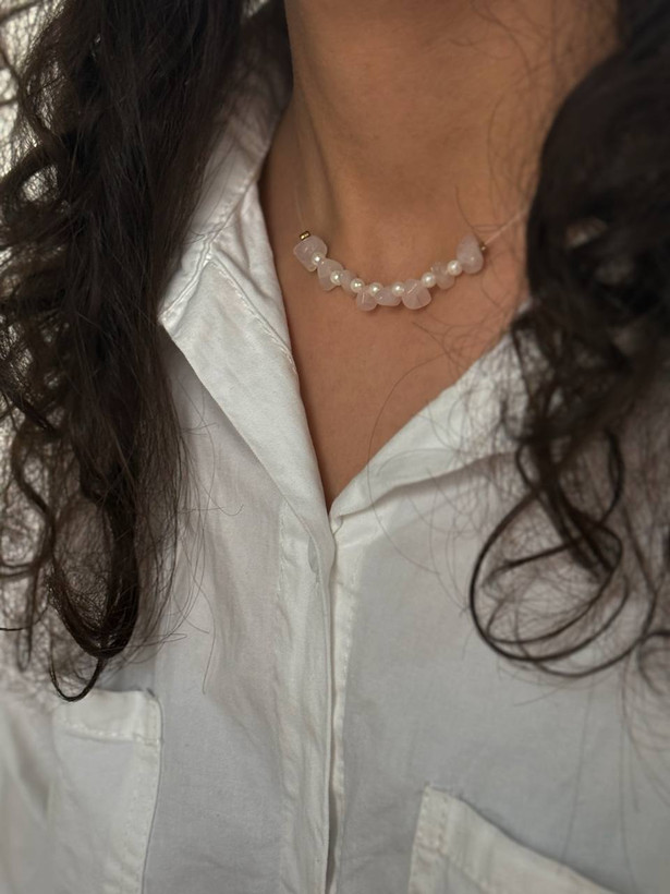 گردنبند دخترانه مدل سنگ رزکوارتز و مروارید شماره 3