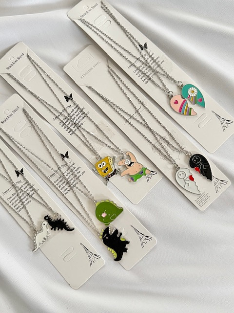 مشخصات: گردنبند ست شامل دوعدد گردنبند جداگانه می باشد قیمت دو عدد باهم 189ت هست در ۵ طرح فانتزی