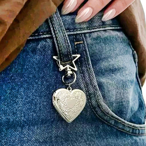 جاکلیدی و آویز کیف استیل طرح لاکت قلبی رنگ ثابت