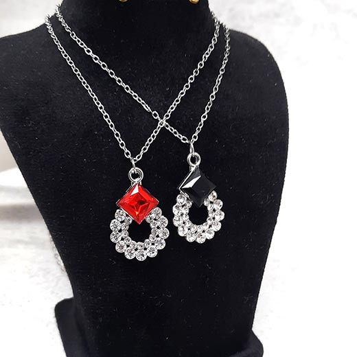 گردنبند زنانه نگیندار زنجیر استیل رنگ قرمز و مشکی کد407