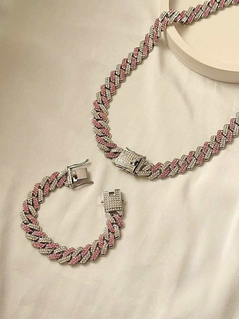 هم بصورت ست و هم بصورت تکی قابل سفارشه تمام نگینکاری شده قفل کوبایی فول نگین غیر قابل شستشو بصورت مجلسی استفاده شود رنگ نقره ای