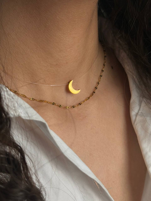گردنبندزنانه دو لاین طرح ماه بابند نامرئی