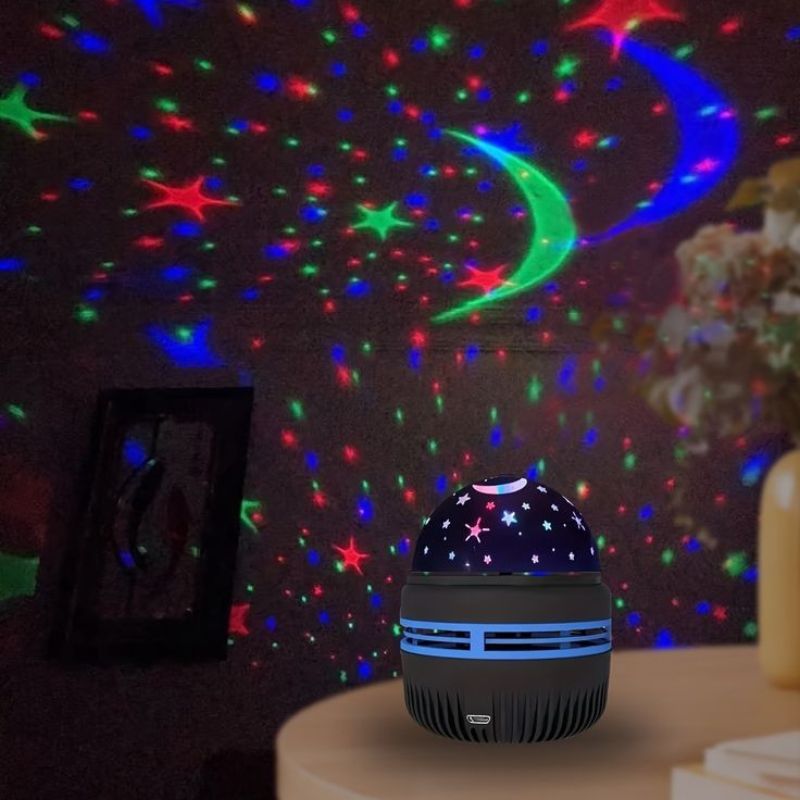 مشخصات: ویژگی: آباژور ماه و ستاره رنگ ها: ۴ تم مختلف حرکت نور ها: نور هاش روی سقف حرکت میکنه درجه نوری: 180 درجه