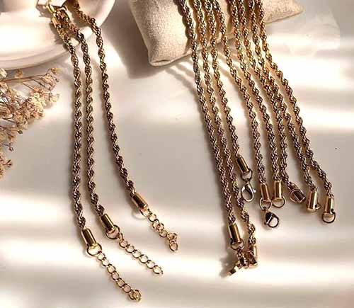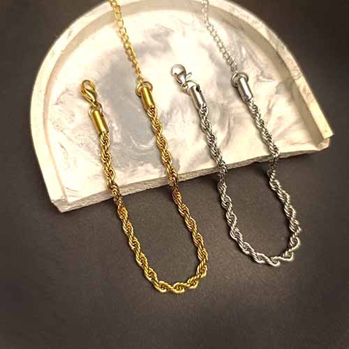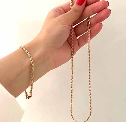 مشخصات: طول محصول : گردنبند 45 سانتی متر دستبند 18 سانت متر رنگ : طلایی و نقره ای دستبند داری 5 سانت زنجیر سایز قفل و حلقه اتصالات استیل رنگ ثابت