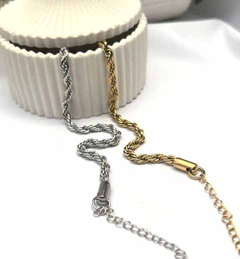 طول محصول : گردنبند 45 سانتی متر دستبند 18 سانت متر رنگ : طلایی و نقره ای دستبند داری 5 سانت زنجیر سایز قفل و حلقه اتصالات استیل رنگ ثابت