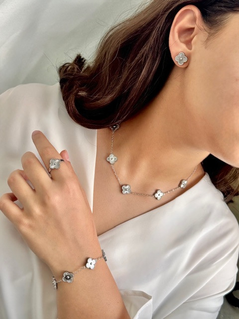ست کامل شامل گردنبند، گوشواره، دستبند و انگشتر می باشد استیل رنگ ثابت