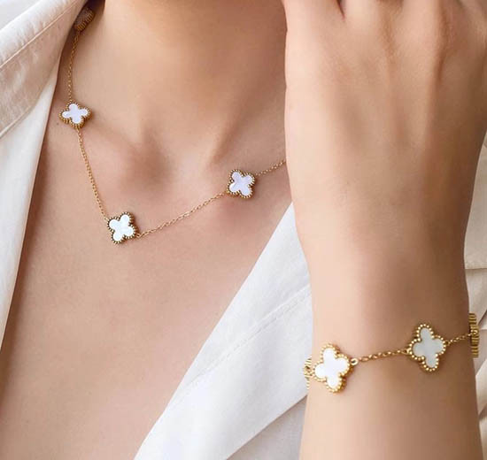 ست کامل شامل گردنبند، گوشواره، دستبند و انگشتر می باشد استیل رنگ ثابت