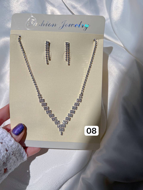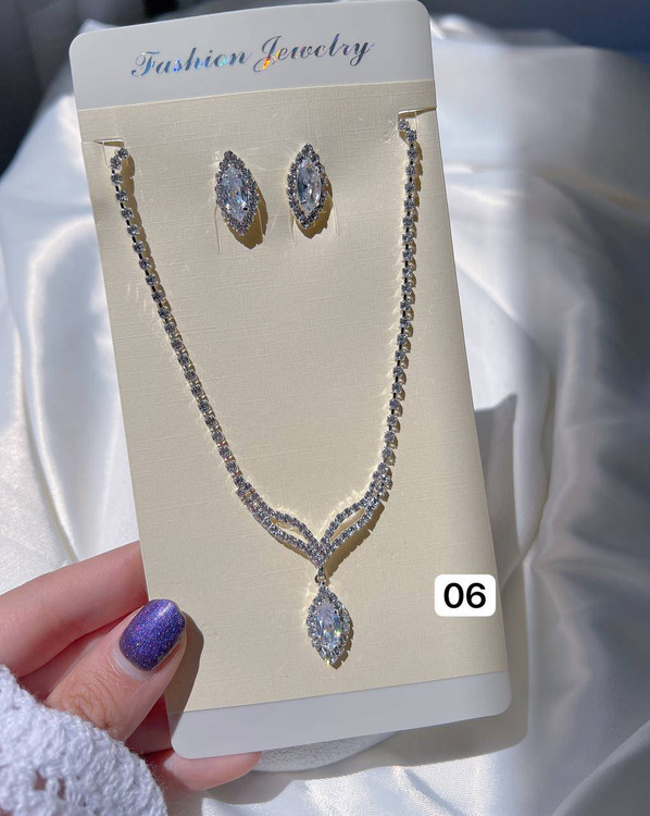نیمست مجلسی/گردنبند+گوشواره/نگین دار/ابکاری نقره/ضدحساسیت/کیفیت بالا/هرگونه بدلیجات از موادشوینده عطرادکلن استخر دورباشند