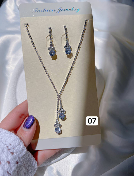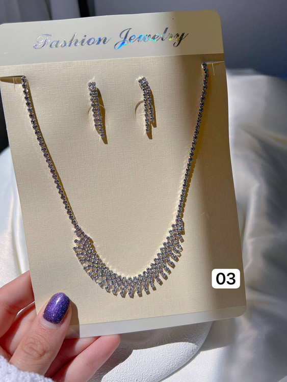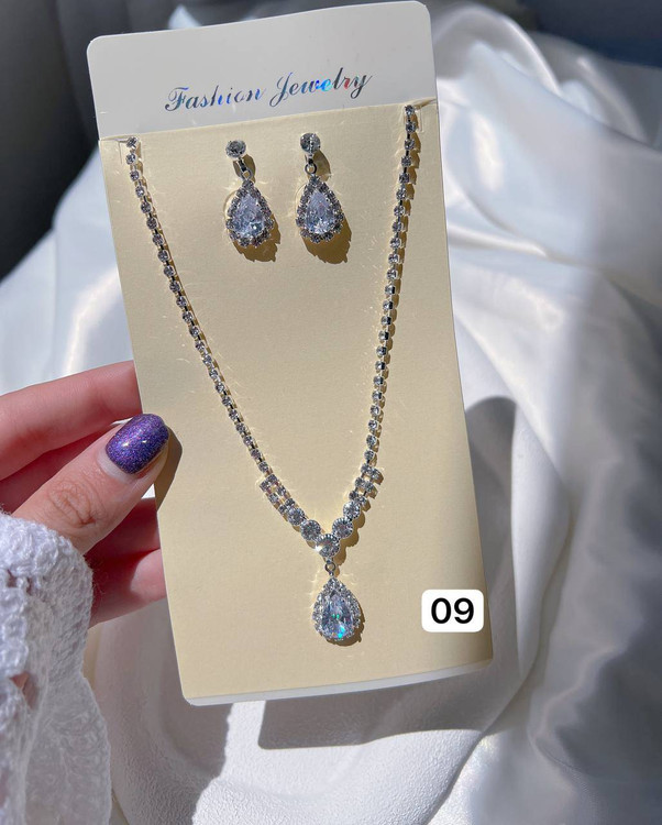 مشخصات: نیمست مجلسی/گردنبند+گوشواره/نگین دار/ابکاری نقره/ضدحساسیت/کیفیت بالا/هرگونه بدلیجات از موادشوینده عطرادکلن استخر دورباشند