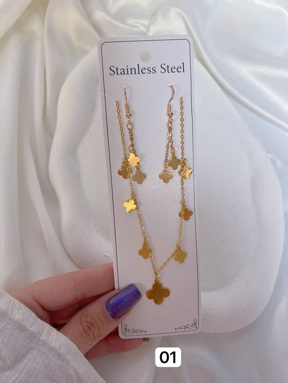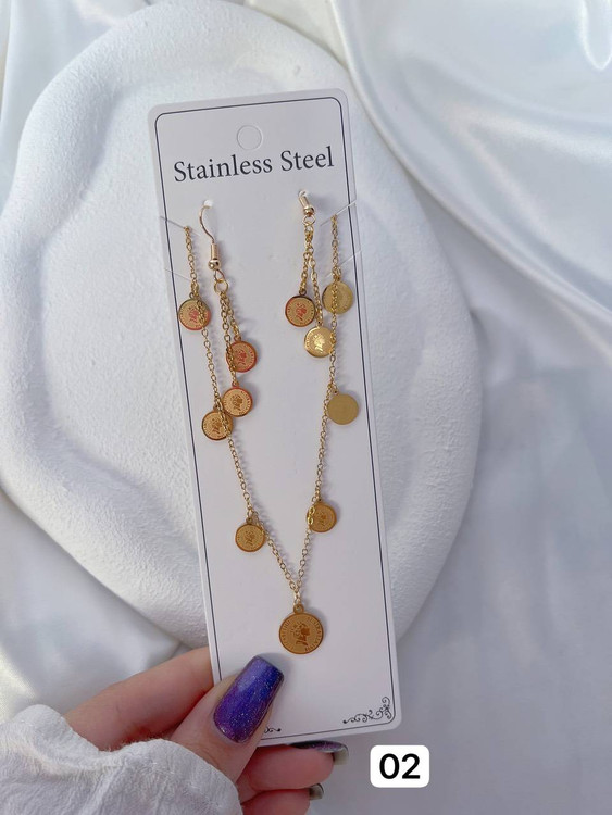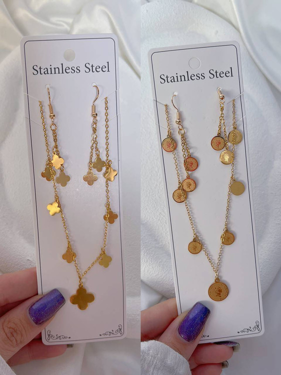 نیمست زنانه/شامل گردنبند+گوشواره/استیل ورنگ ثابت/مناسب استفاده روزانه/ضدحساسیت