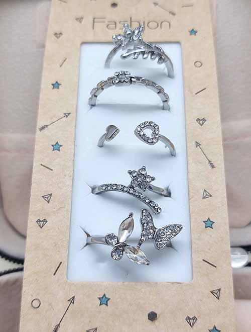 پک انگشتر دخترانه 5عددی ستاره قلب نقره ای پک انگشتر نگیندار دخترانه