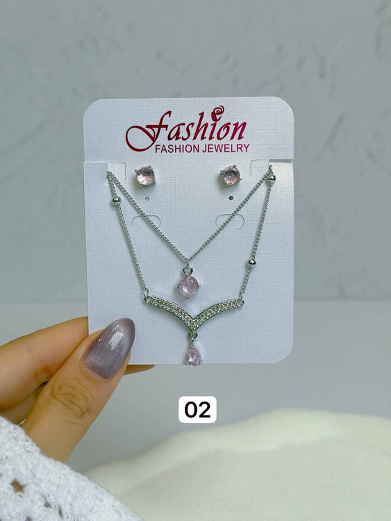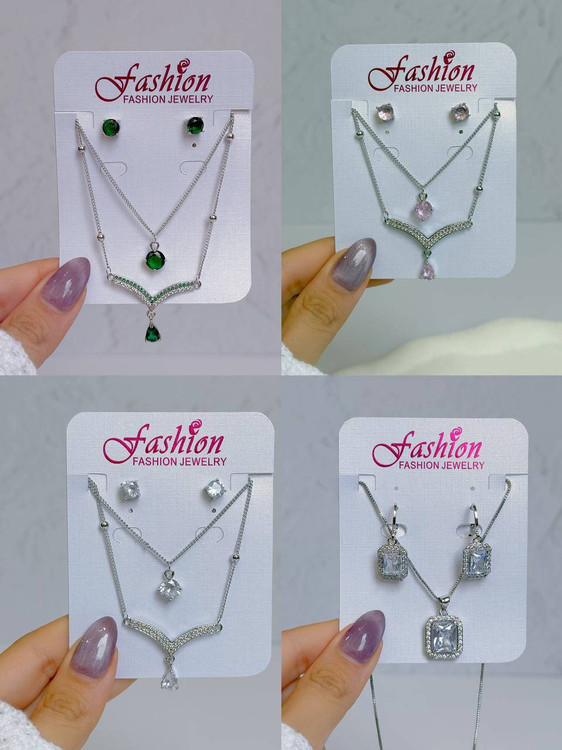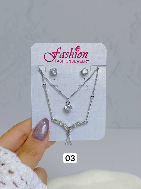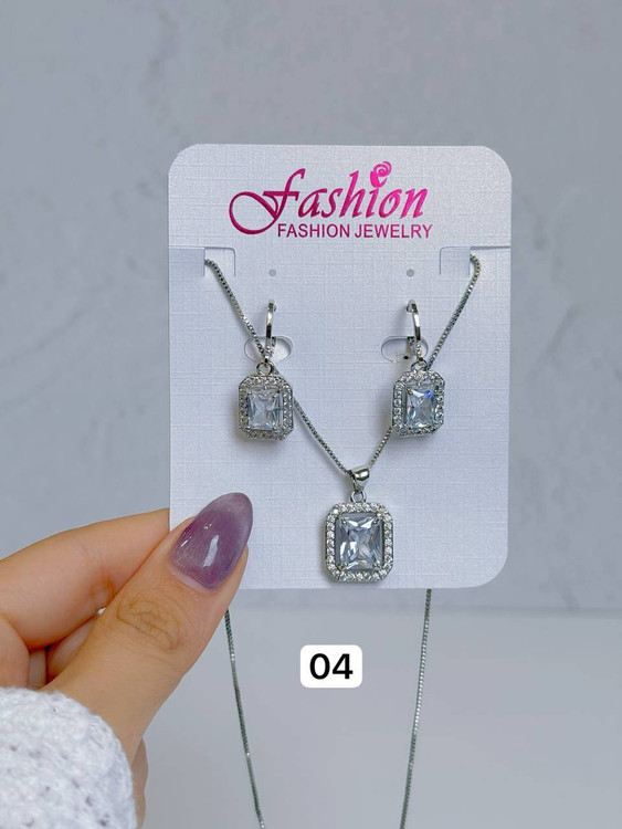 نیمست مجلسی/گردنبند+گوشواره/جنس ابکاری نقره/ضدحساسیت/گردنبنددارای زنجیر باقابلیت تنظیم ارتفاع/نگین مخراج کاری شده/هرگونه بدلیجات از موادشوینده عطر ادکلن استخر عرق اسیدی دور باشند