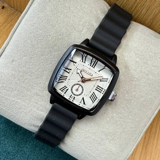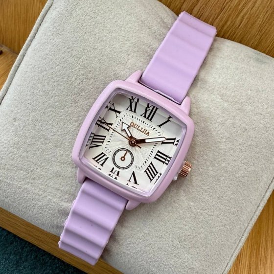 ساعت مچی دخترانه فانتزی الژیا بند رابر(سیلیکونی) ضدحساسیت مربعی +باطری اضافی رنگبندی متنوع کد 9911