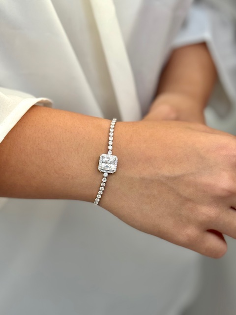 دستبندزنانه تنیسی پلاک دارتمام نگینکاری شده مجلسی