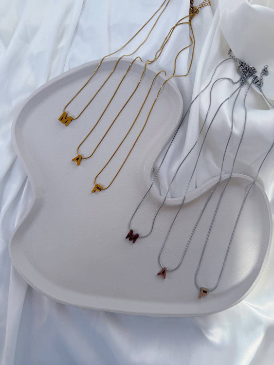 گردنبند حروف/رنگ ثابت/جنس استیل/کیفیت بالا/ضدحساسیت/حموم ازاد/دارای زنجیز رماری نازک