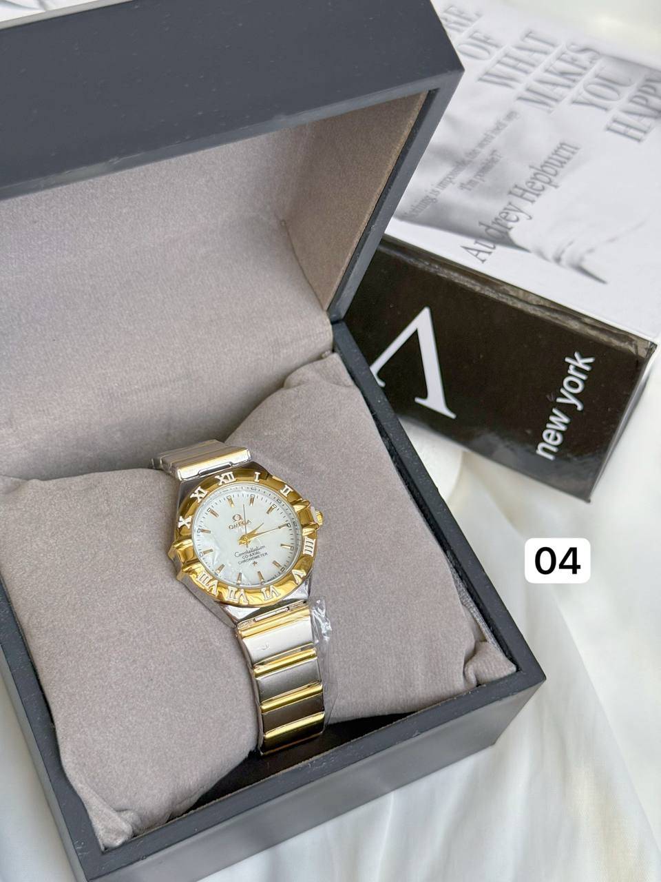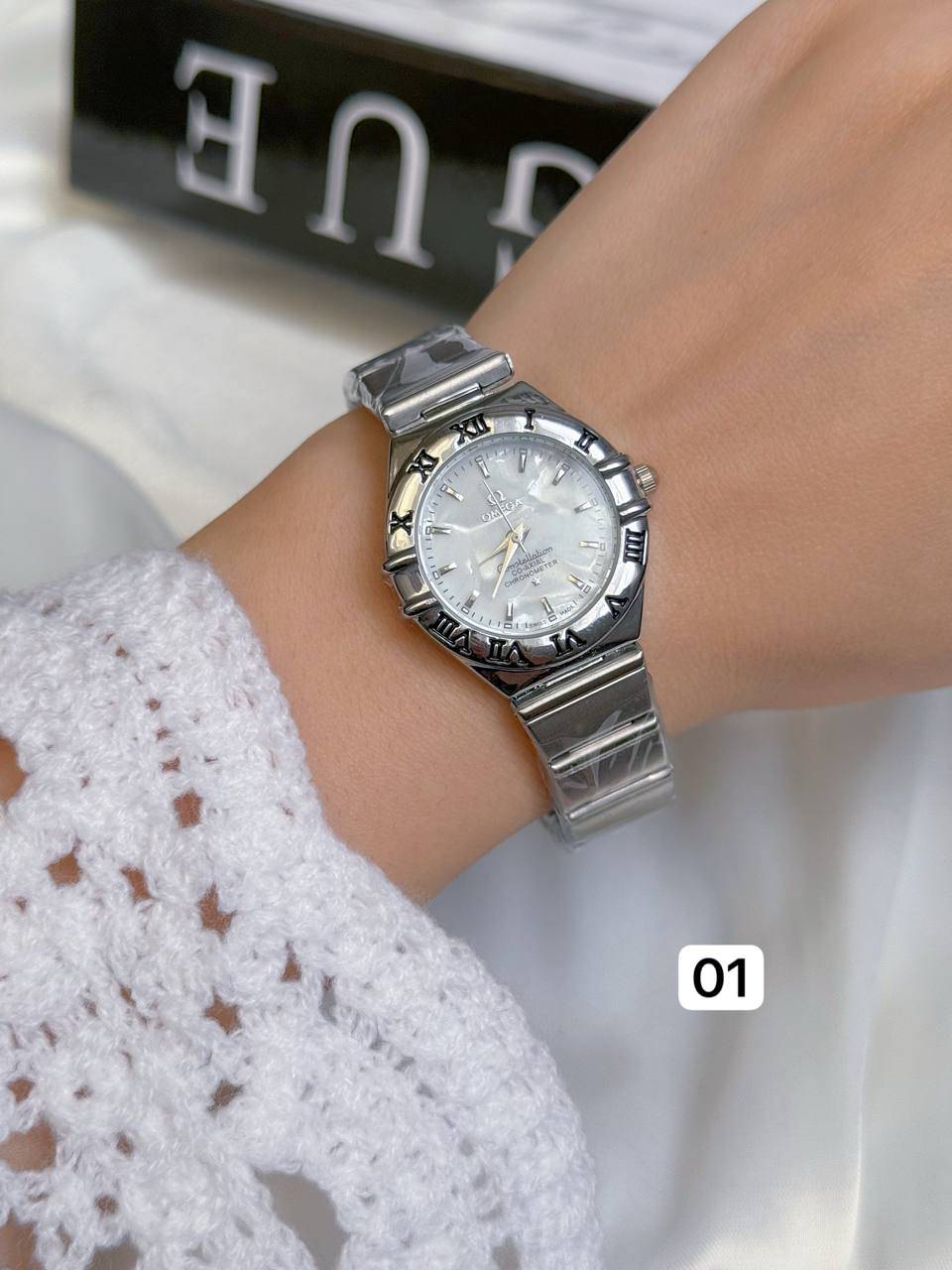 ساعت زنانه/برند امگا/بند استیل/بک استیل/ضدحساسیت/باتری دارد/کیفیت بالا/باتری وموتور قابل تعویض/دارای حک برند