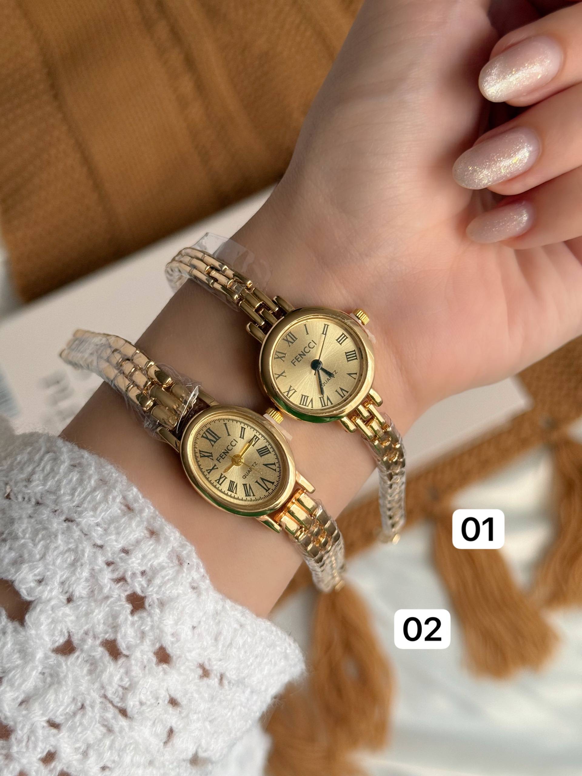 ساعت مینمیال طلایی برند فنسی1203ساعت برند فنسی/طلایی/جنس ابکاری رادیوم/بک استیل/باتری دارد/ضدحساسیت/باتری وموتور قابل تعویض/