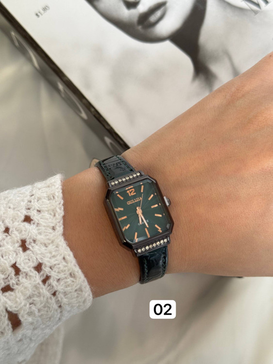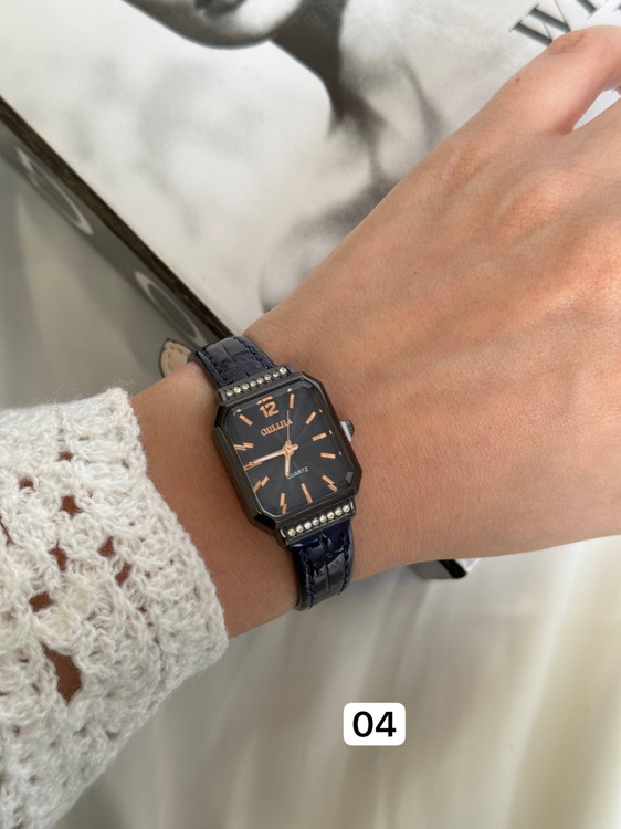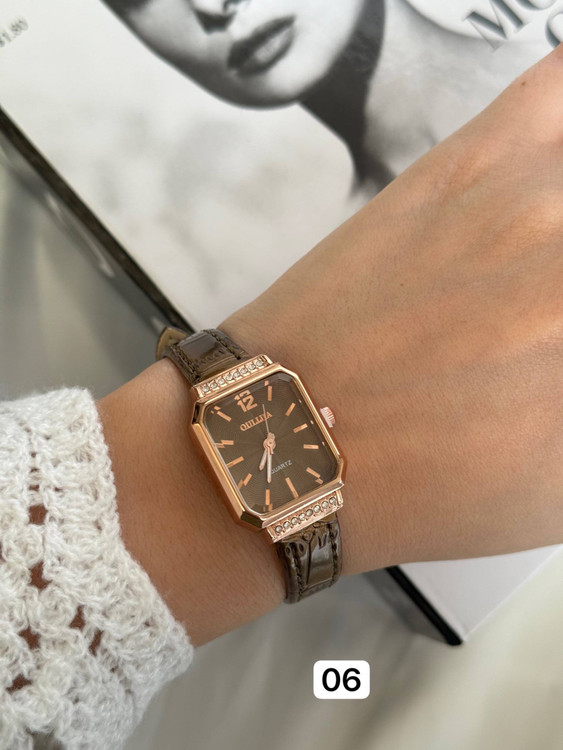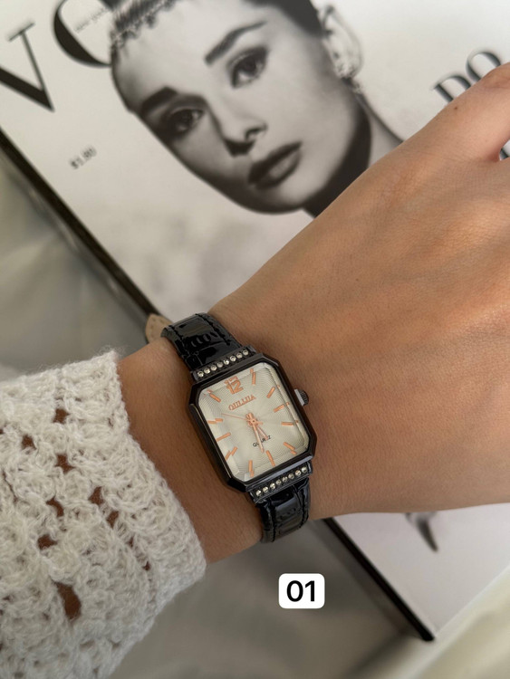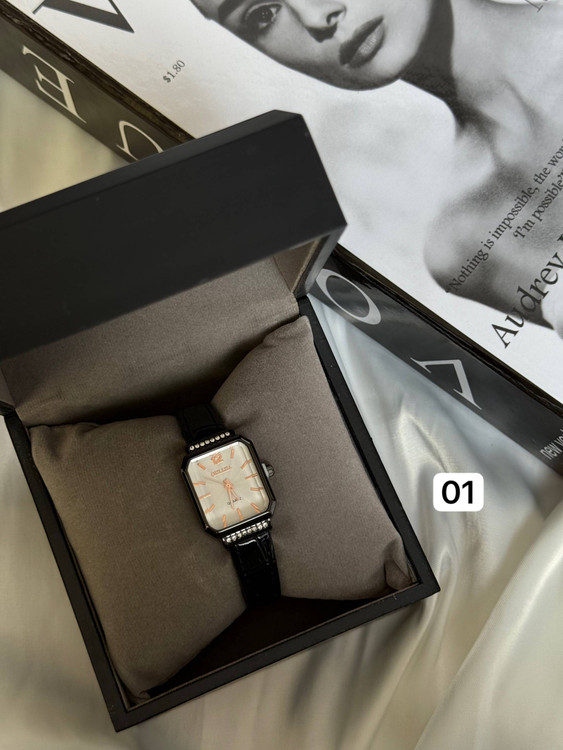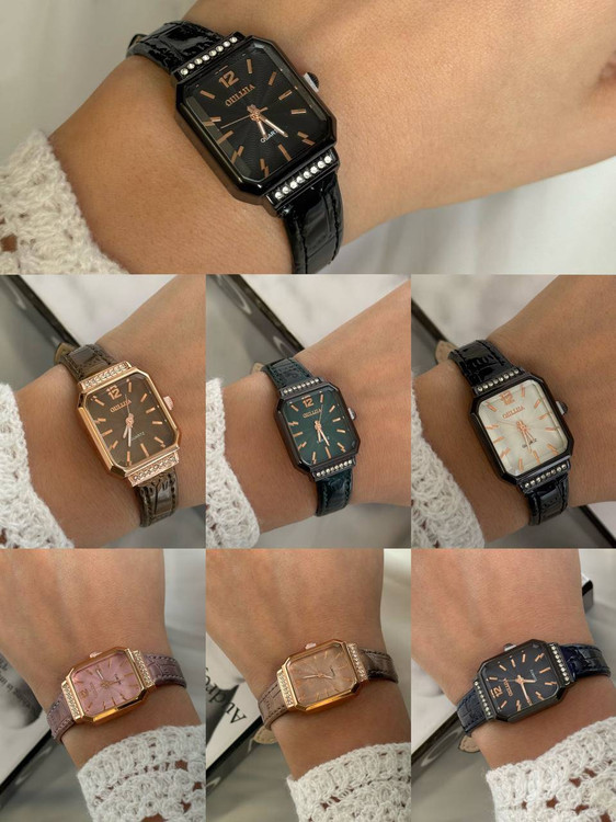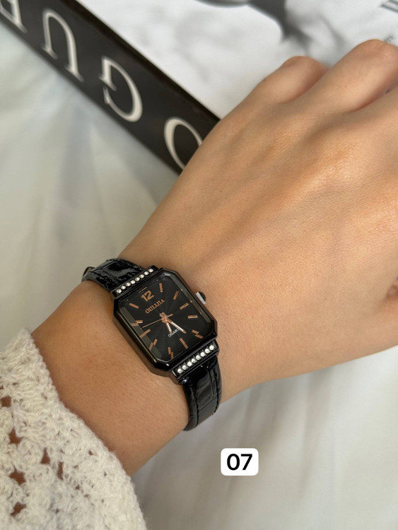 کالکشن ساعت اولجیا مربعی1168 ساعت بندچرمی/بک استیل/ضدحساسیت/چرم دور دوخت شده/وارداتی/کیفیت بالا/باتری دارد/باتری و موتور قابل تعویض