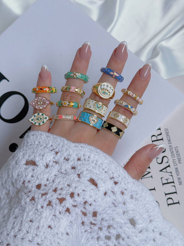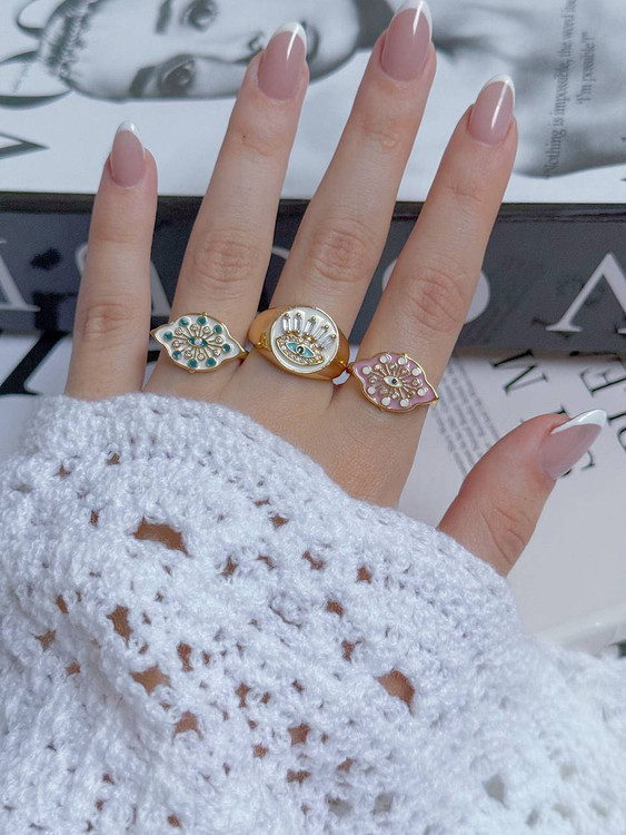 انگشتر/میناکاری/فری سایز/از پشت بازوبسته میشود ومناسب هرسایز انگشت/جنس ابکاری رادیوم قوی/وارداتی و باکیفیت/نگین مخراج کاری/ضدحساسیت/هرگونه بدلیجات از موادشوینده عطر ادکلن استخر عرق اسیدی دور باشند