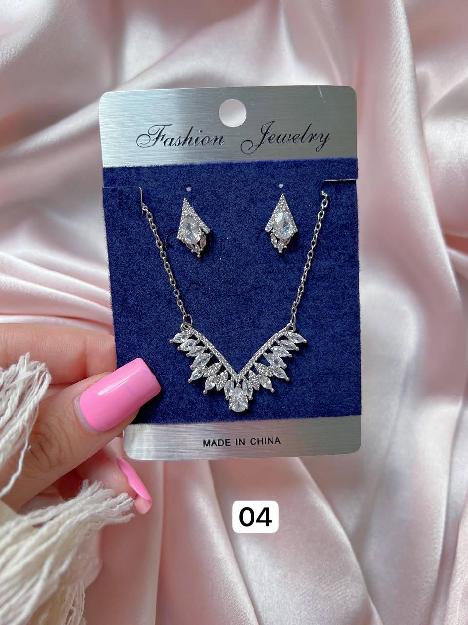 مشخصات : نیم ست جواهری/گردنبند+گوشواره/نگین مخراج کاری شده وبدون ریزش/استیل/ضدحساسیت/هرگونه بدلیجات از موادشوینده عطرادکلن استخر دورباشند